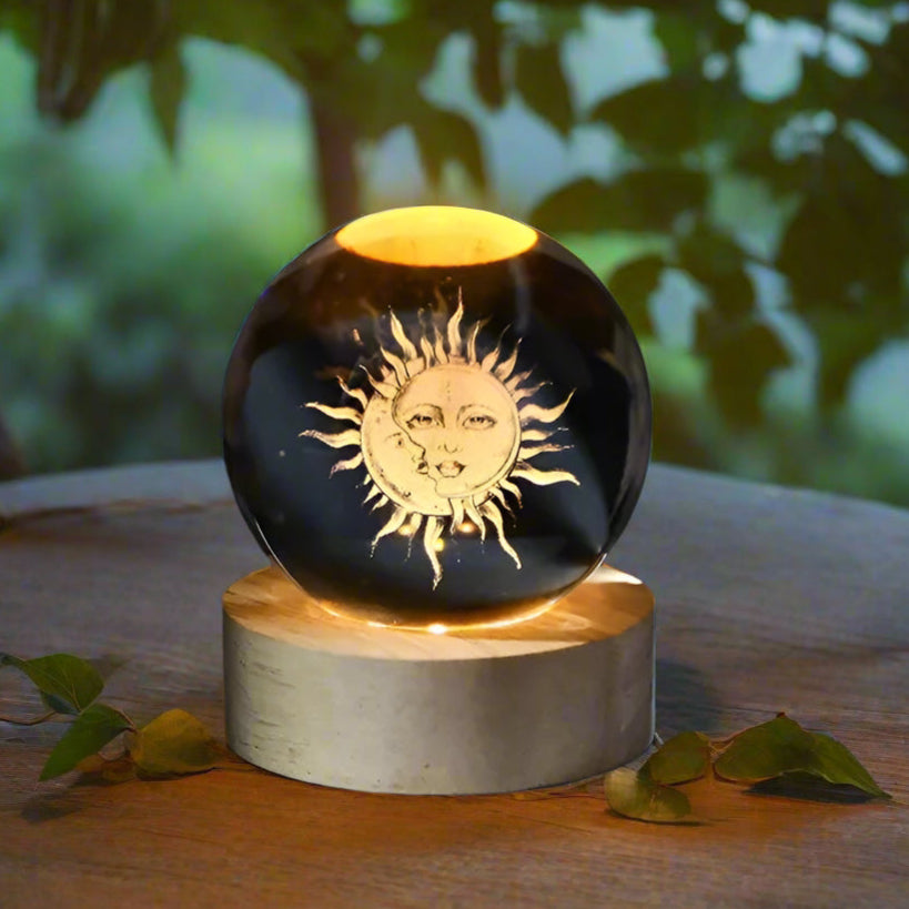 Elevate your home decor with our mesmerising laser-engraved 3D sun/moon lamp. With its sleek wooden base and gentle, warm LED light, this 8cm lamp adds a natural and calming atmosphere to any room. Let it be a source of inspiration for your nighttime dreams or a soothing escape for your daytime daydreams. Bring the beauty of the sun and moon into your home with this enchanting lamp!