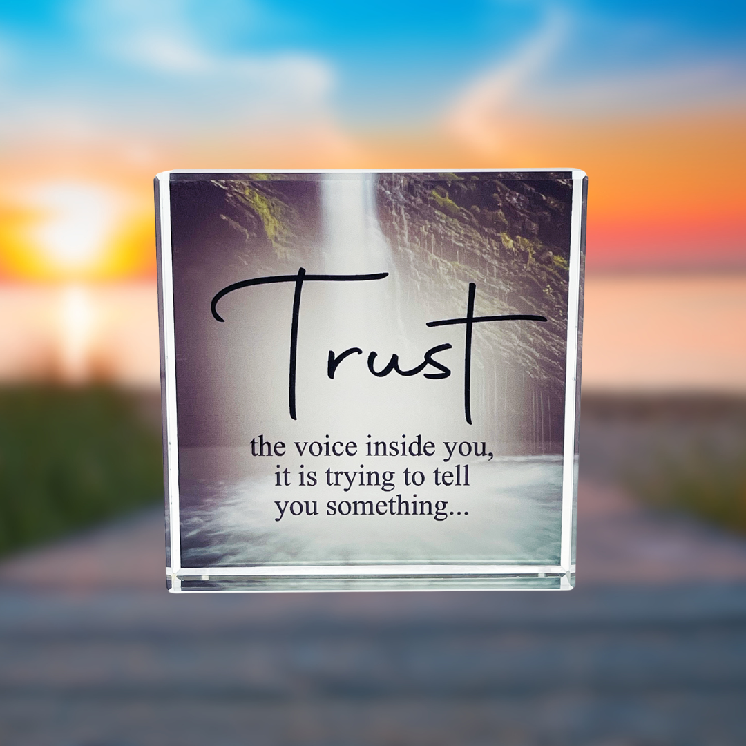 Introducing our Trust Crystal Block - an exquisite creation crafted from the finest pieces of crystal. Let its delicate etchings remind you to trust in yourself and listen closely to your inner voice. This elegant masterpiece is designed to elevate your space and inspire you to be your best self.